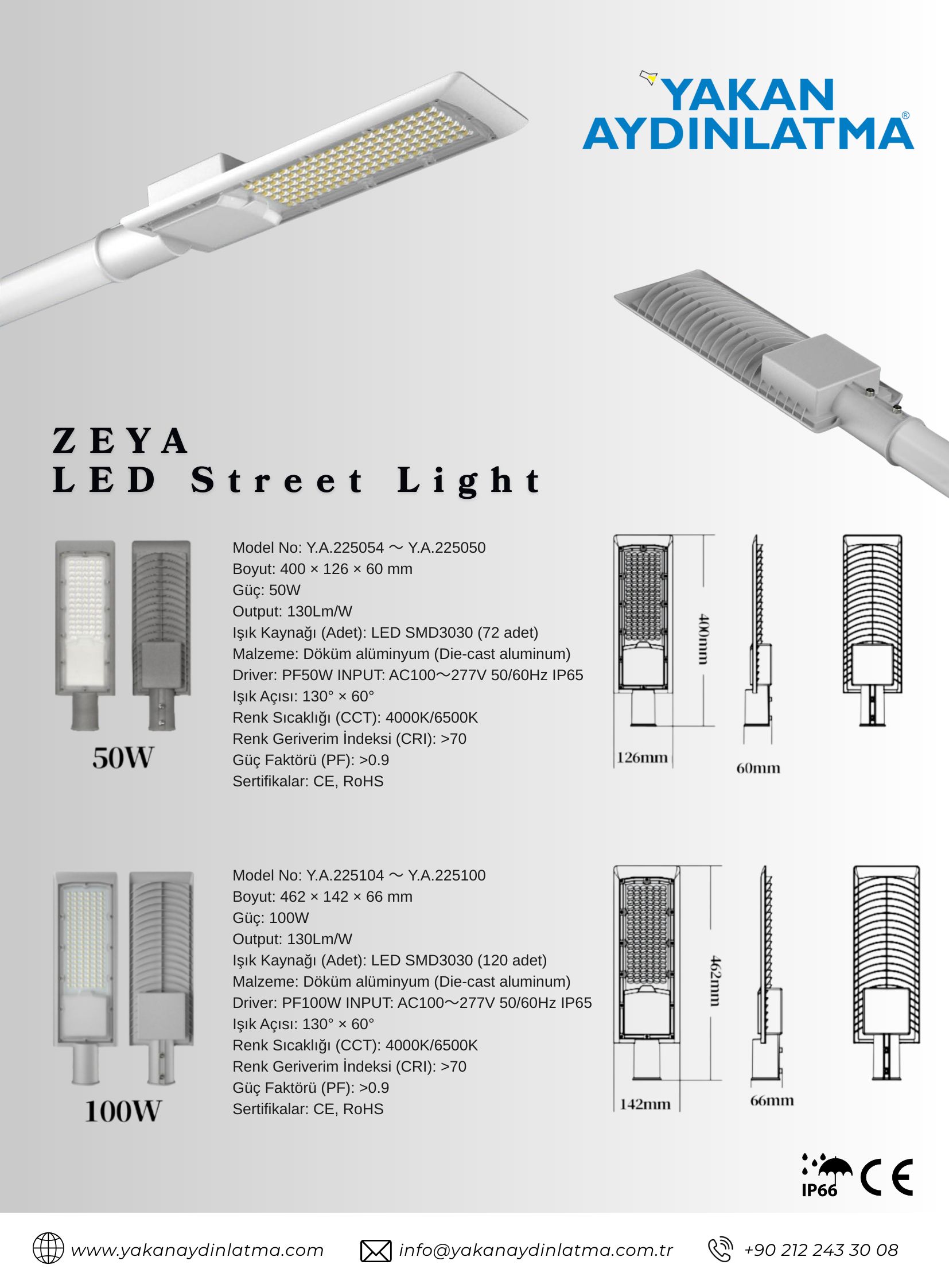 - ZEYA 100W 4000K LED Armatür IP66 ZL-ST22G-100W